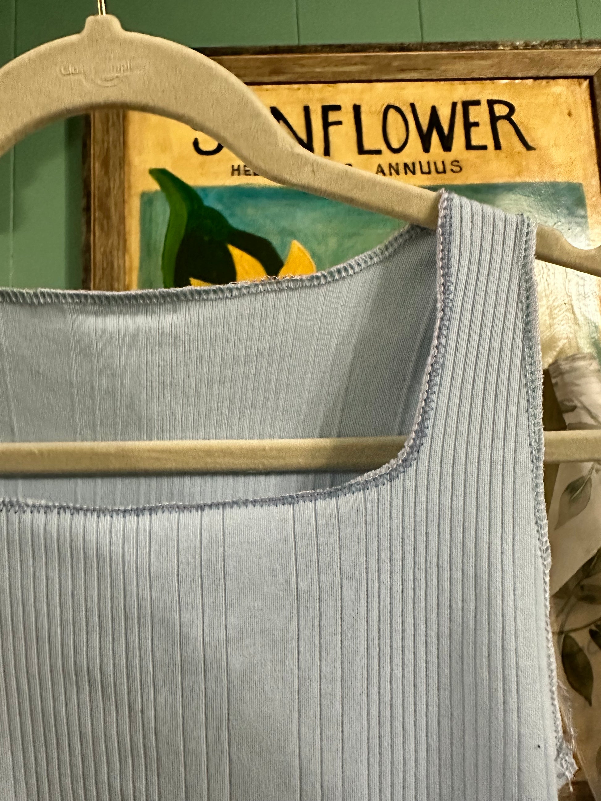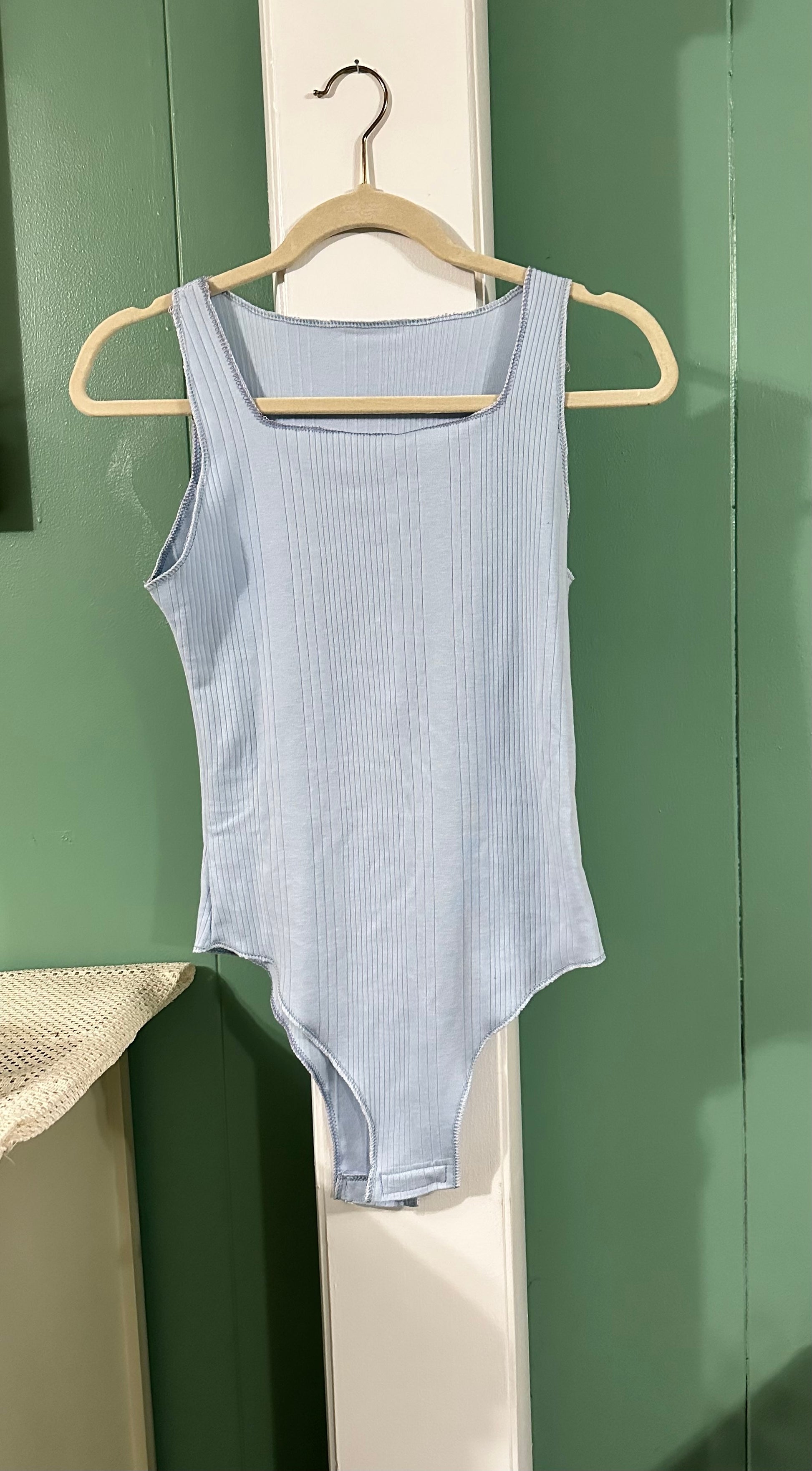 Handmade from an upcycled t-shirt, this bodysuit can be worn with a scoop or square neckline and has snap closure.